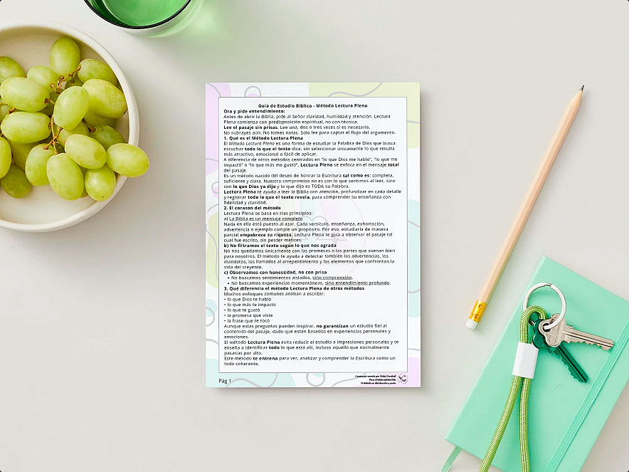 Este recurso está pensado para quienes desean ir más allá de la lectura diaria y aprender a analizar, observar, conectar y aplicar el texto de manera intencional. Ideal para estudios personales, cuadernos devocionales, Biblia Maestra, tiempo de oración y grupos pequeños.